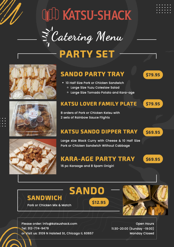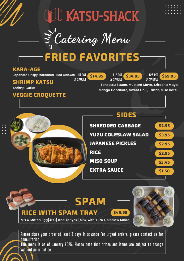 From corporate meals to special celebrations, bring the crispy, savory delight of our signature katsu to your next gathering. Our fresh approach to Japanese comfort food will make your event memorable. Tell us about your event, and we'll handle the rest.